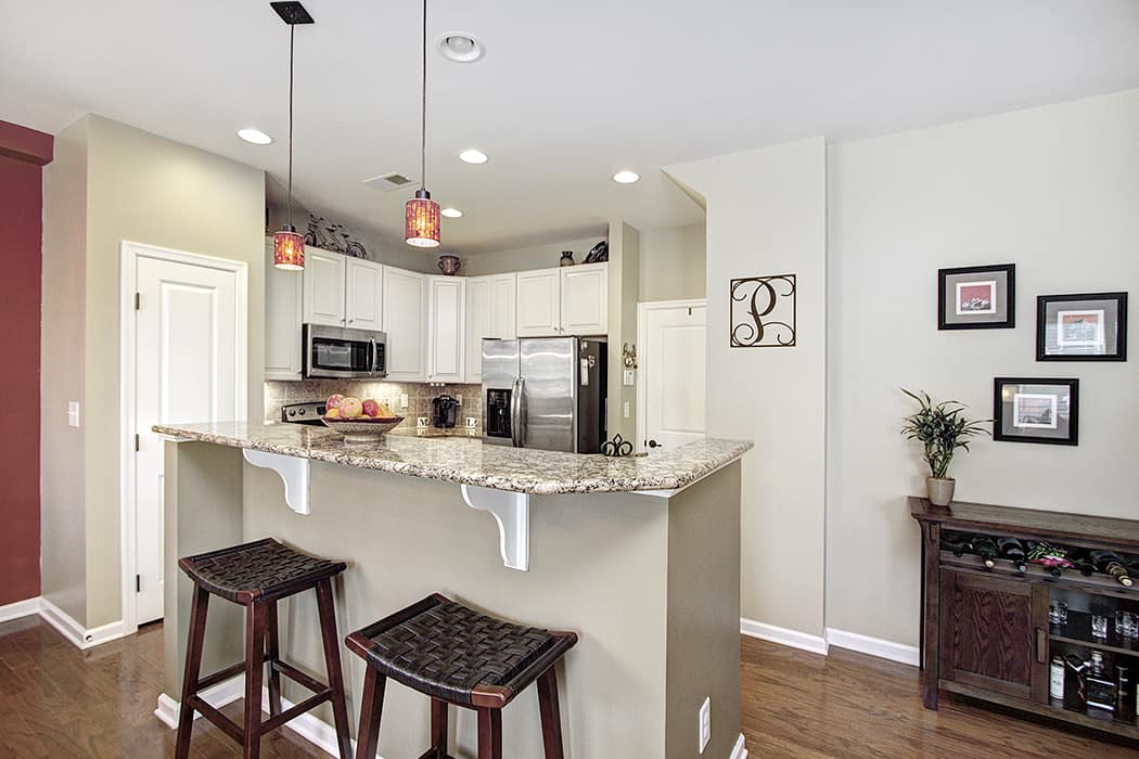 Fabulous Features: Gleaming hardwoods throughout main, 42″ cabinetry, Stainless steel appliances, Tile backsplash, Large island bar, Granite countertops, Surround sound i greatroom, HDMI connections, included components, Custom shelving in bedrooms, Trey ceiling in master bedroom, Garden tub in master bath, Two car garage, Epoxy floor & workspace in garage, Walk-able neighborhood & Great Ballantyne location.