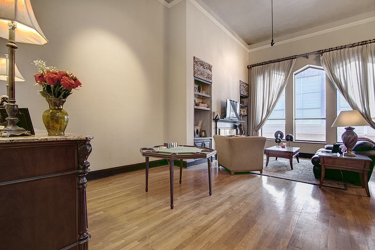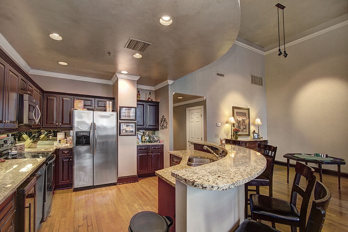 Additional Property Details: Penthouse-level suite, Beautiful hardwoods throughout, Stainless steel appliances, Granite countertops, 14ft ceilings, Floor-to-ceiling windows, Expanded bar, Gaslog fireplace, Built-ins, Trey ceiling, Chandeliers all convey, Covered parking, 24-hour concierge, Great Uptown Charlotte location, Walk to everything!