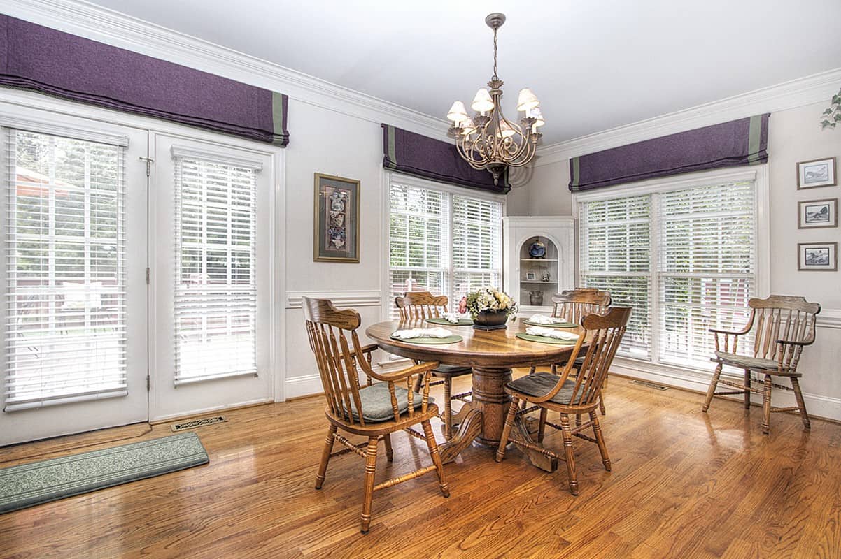 The large formals offer flex space in the front of the home with the dining room accessible from the foyer and the kitchen. Dining room features chair railing and picture moulding, as well as 6-piece millwork at ceiling.