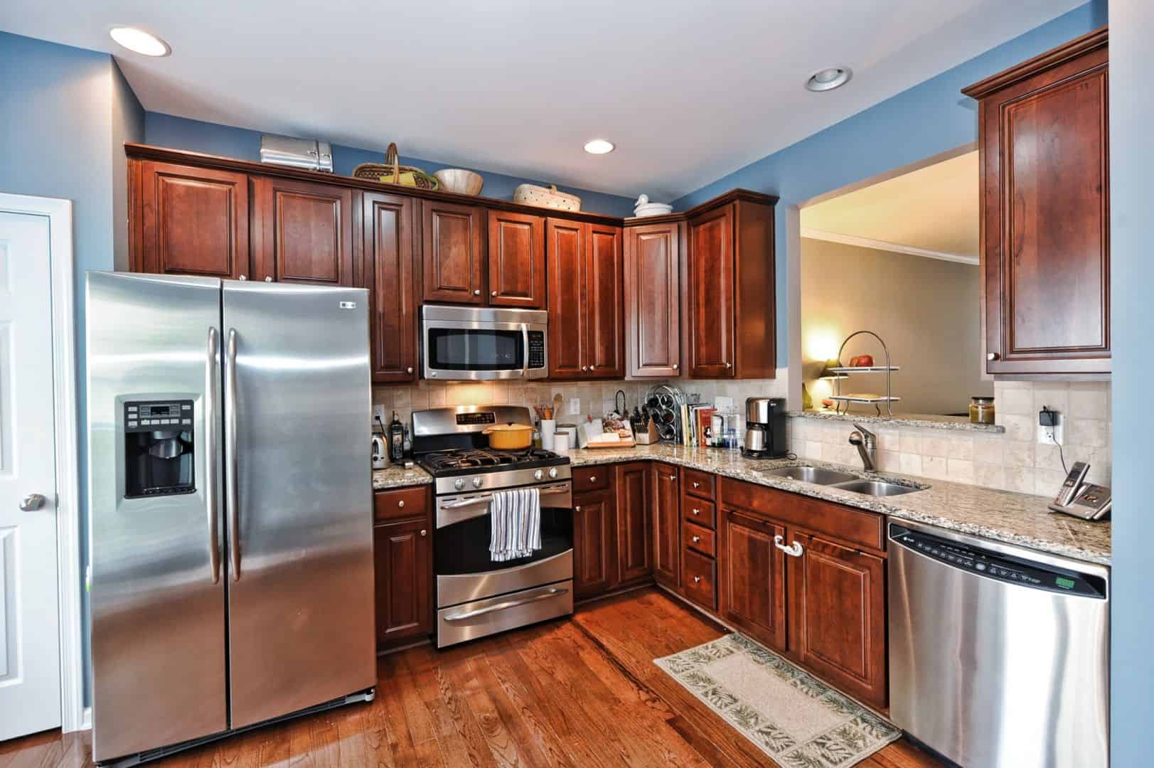 Freshly painted, newly stained stairs with wrought-iron balusters lead to the main level which serves as the living area.  A large kitchen with tile backsplash, granite, stainless and lots of cabinets with a pantry has large windows, a pass-through bar that leads to the dining area.  The open floorplan offers an oversized family room that leads to a great sunroom/office/library with a balcony and again, lots of windows!  Gleaming hardwoods and surround sound are also highlights of the main level.  There is a half-bath for the convenience of your guests on this level as well.