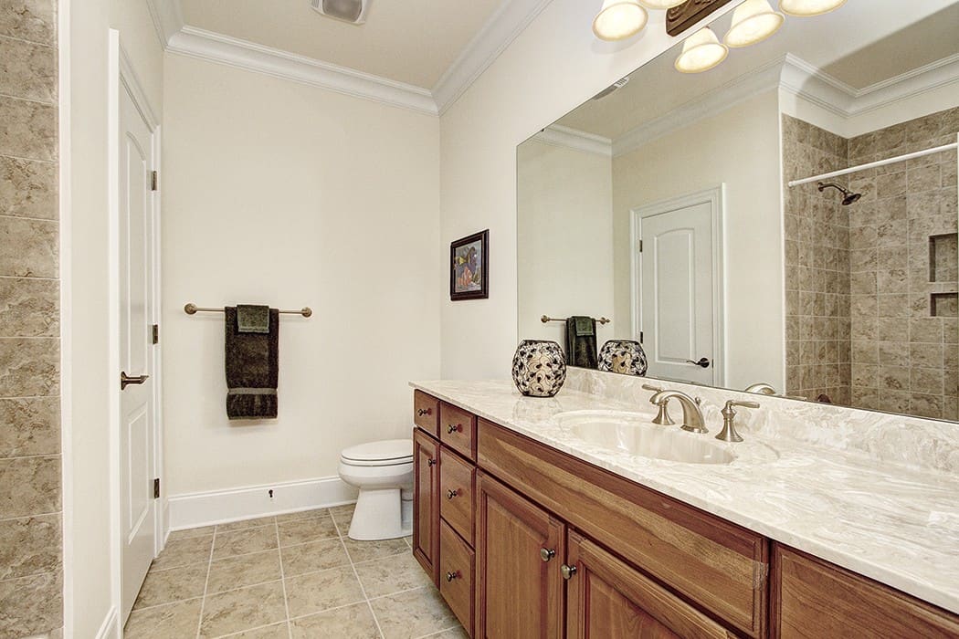 Also on the main level is the master bedroom (with trey ceiling) featuring a luxurious bath with jetted tub, enormous shower, fully tiled with dual shower heads, vast dual vanity, a water closet and two huge California closets.
