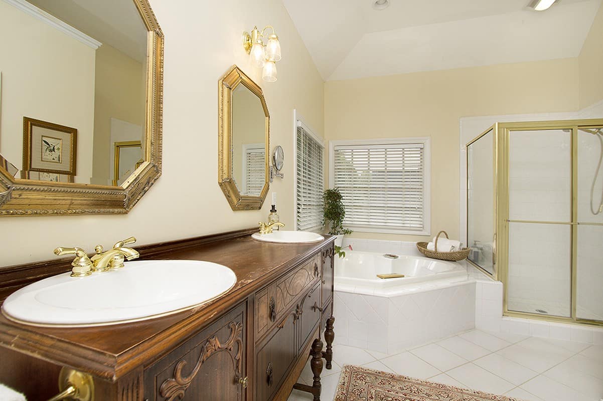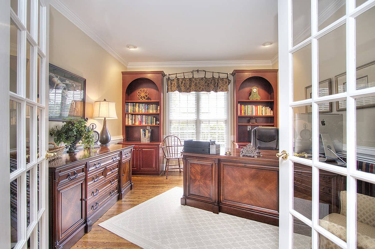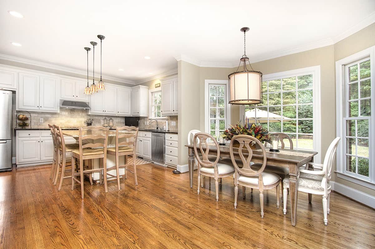 The chef’s dream kitchen features stainless steel appliances, including a 5-burner gas cooktop and lots of cabinets and countertop (granite) space. A large kitchen island with storage and additional seating space offers a great area for homework, service area for large dinner parties and more. There is a large butler’s pantry between the kitchen and the formal dining room.