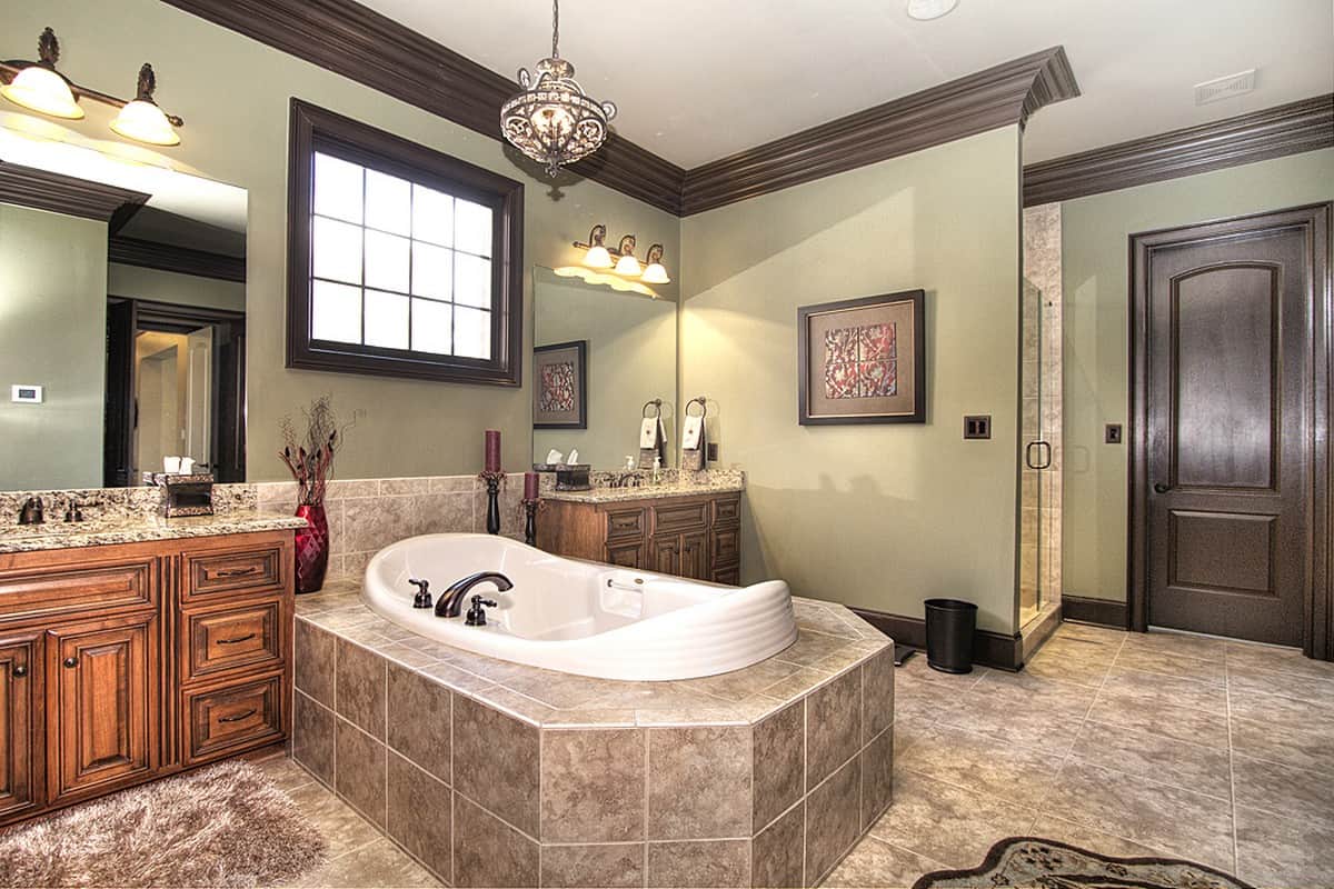 Also on the main level is the luxurious, newly carpeted master suite. The bath includes separate sinks and cabinets with granite, a large center-set jetted tub, walk-in shower, stunning lighting and huge custom closets. The large master bedroom also leads to the screened porch.