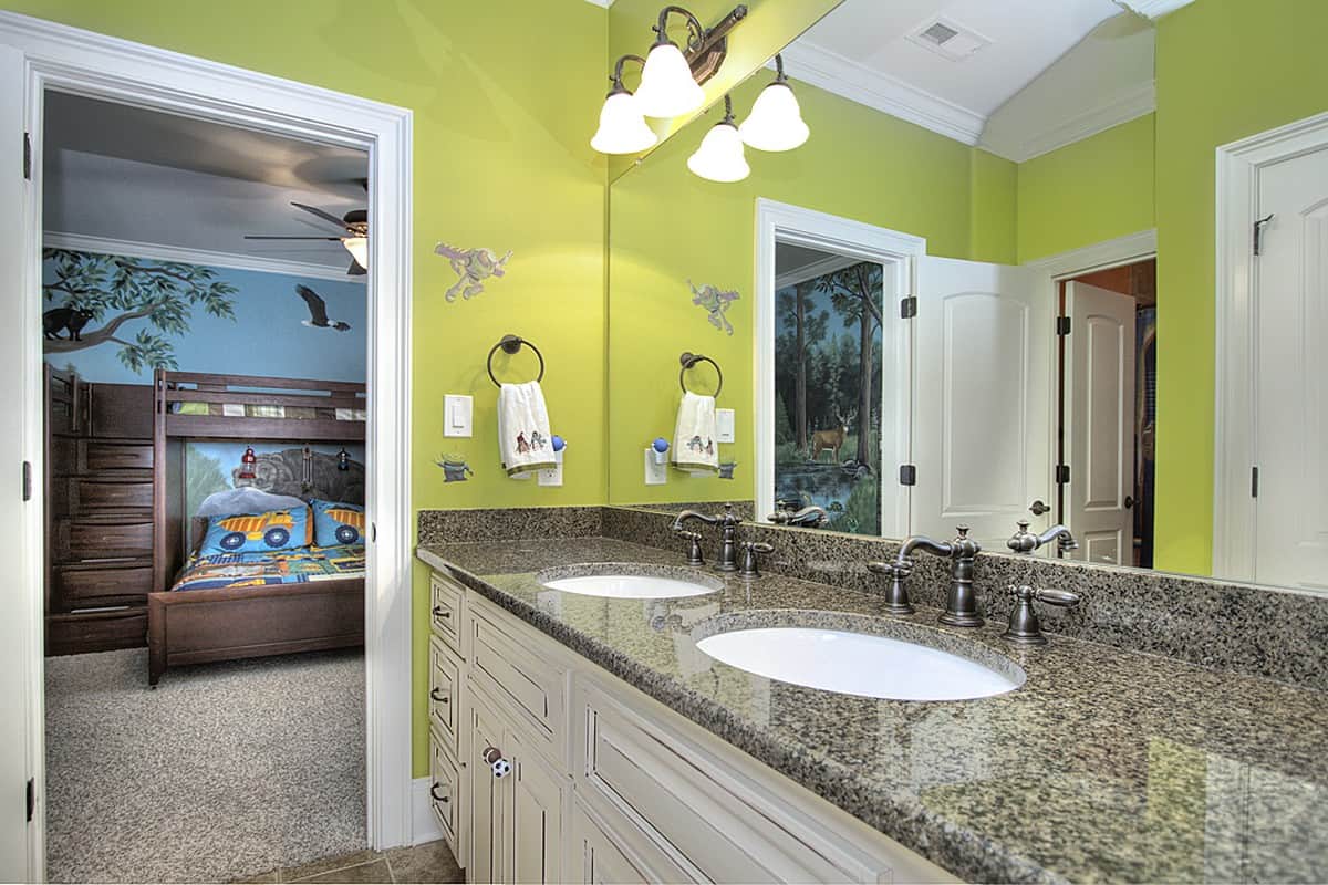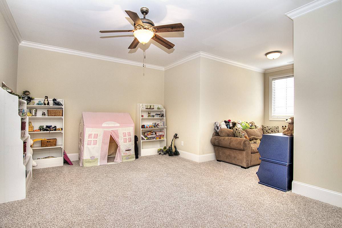 Gleaming hardwoods on the main level, also extend up the stairs and in the hallway upstairs. Located upstairs is the large bonus room (with huge closet) with new carpeting, another ‘playroom’ or bedroom, also with a large closet, two loft office/sitting spaces, ensuite bedrooms, two of which have custom murals and enormous closets, a guest bedroom and more storage space than you’ve ever seen!